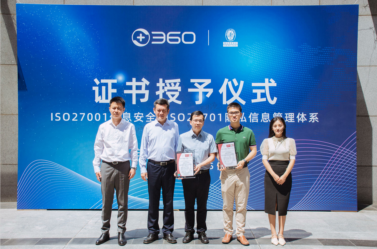 数字文明时代,加强信息安全尤其是个人信息保护已成为社会共识。6月15日上午,三六零(601360.SH,下称“360”)获得国际权威认证机构法国必维集团(Bureau Veritas,简称“必维”)授予的信息安全管理体系标准ISO/IEC 27001及隐私信息管理体系标准ISO/IEC 27701双认证,标志着360在信息安全及隐私保护能力达国际先进水平。同时,360也成为我国数字安全领域内唯一一家通过双重认证的企业。